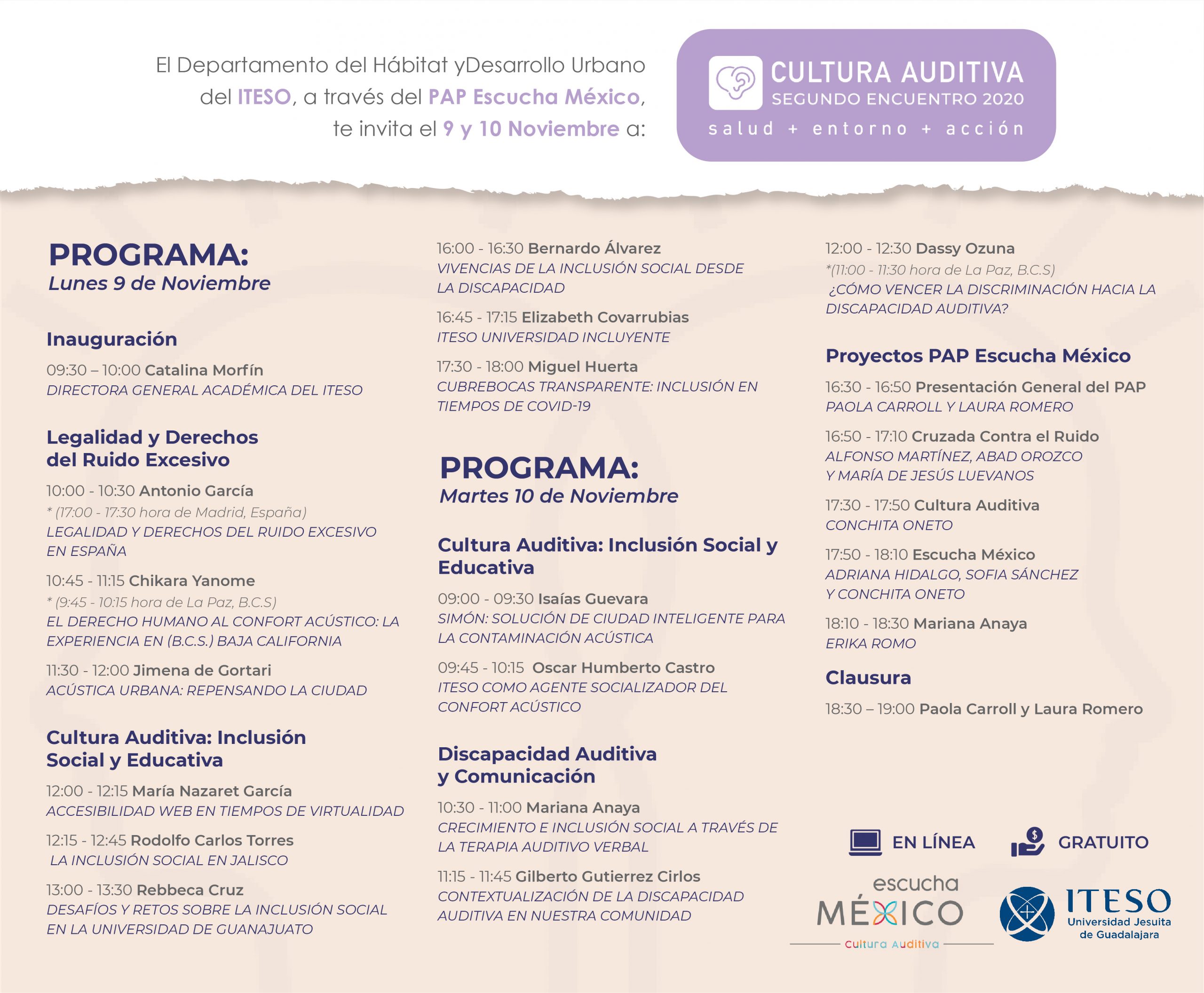 El pasado día 9 y 10 de noviembre tuvo lugar, organizado por ITESO, Universidad Jesuita de Guadalajara y el PAP ESCUCHA MÉXICO el SEGUNDO ENCUENTRO DE CULTURA AUDITIVA 2020.